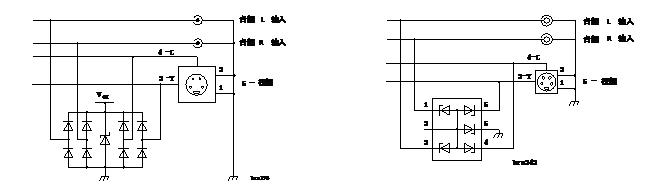 下圖為PRTR5V0U4D / PESD5V0L5Ux在S-Audio/Video接口保護電路中的連接示意圖。