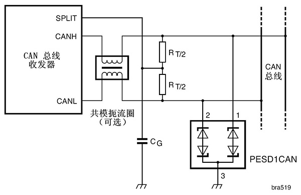 CAN總線、LIN總線初期主要應(yīng)用于汽車電子中,目前兩種總線已經(jīng)廣泛應(yīng)用各種中短距離總線場所,如工控、汽車電子等惡劣環(huán)境中。NXP推薦您在此類接口中加入ESD保護器件以增強您的系統(tǒng)的可靠型,推薦連接示意圖如下所示。