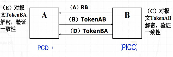 C.B接收到報文TokenAB后,對加密部分進(jìn)行解密,并驗證標(biāo)識符B和隨機(jī)數(shù)RB的正確性,驗證在A發(fā)送到B的RB與包含在TokenAB中的隨機(jī)數(shù)是否一致;
