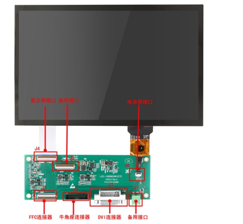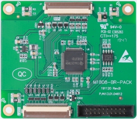 M1808評(píng)估板提供了一路MIPI DSI顯示接口以及一路RGB-LCD顯示接口。對(duì)于MIPI DSI顯示接口可以選擇使用致遠(yuǎn)電子生產(chǎn)的LCD-1280800W101TC 10.1寸LVDS接口的液晶顯示屏。在使用該顯示屏?xí)r,還需要額外增加一個(gè)M1808-BR-PACK顯示接口轉(zhuǎn)接板,用于將評(píng)估板LVDS接口轉(zhuǎn)接成LVDS接口。液晶屏和液晶轉(zhuǎn)接板分別如下圖所示。