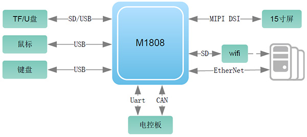 ZLG在了解了客戶需求之后,針對(duì)行業(yè)痛點(diǎn),提供Cortex-A35顯控方案——M1808嵌入式核心板搭配ZLG開源GUI引擎,可快速開發(fā)應(yīng)用界面,具體方案如下所示: