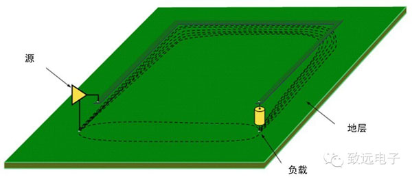 信號傳播,也相當(dāng)于在給沿途的寄生電容充電,寄生電容的負(fù)端就有返回電流了。