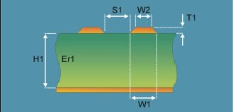 普通USB設(shè)備差分線信號線寬及線間距與整板信號線寬及線間距一致即可。然而當(dāng)USB設(shè)備工作速度是480 Mbits/s,只做到以上幾點(diǎn)是不夠的,我們還需對差分信號進(jìn)行阻抗控制,控制差分信號線的阻抗對高速數(shù)字信號的完整性是非常重要的,因為差分阻抗影響差分信號的眼圖、信號帶寬、信號抖動和信號線上的干擾電壓。差分線阻抗一般控制在90(±10%)歐姆(具體值參照芯片手冊指導(dǎo)),差分線阻抗與線寬W1、W2、T1成反比,與介電常數(shù)Er1成反比,與線間距S1成正比,與參考層的距離H1正比,如下圖是差分線的截面圖。