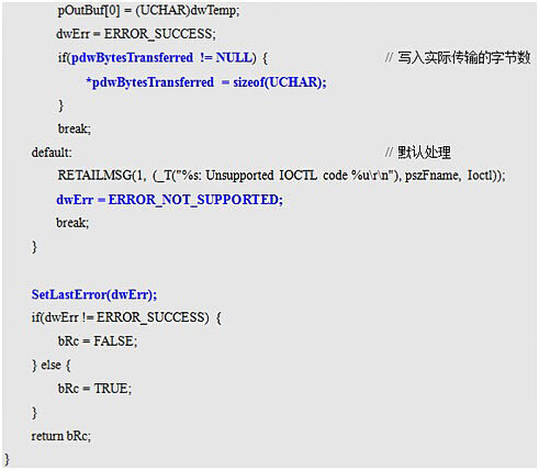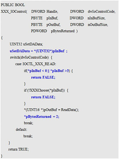 在反方案例中,XXX_IOControl只是返回TRUE或FALSE,返回FALSE時應(yīng)用層無從獲取或獲知是什么原因造成了“FALSE”!