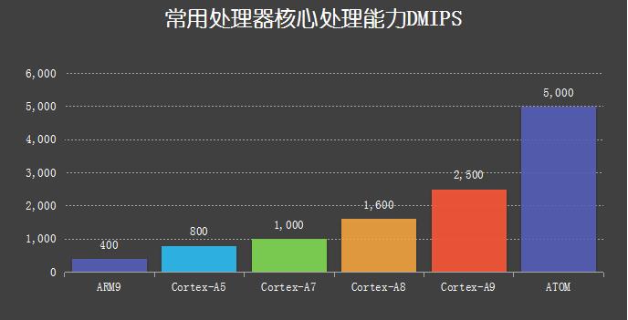 這位工程師朋友就是沒有考慮到處理器能力導致的,那么我們來看一下各種處理器平臺的處理能力,以便大家選型時參考,根據(jù)各種內(nèi)核平臺的單周期處理能力,以及各種內(nèi)核平臺常見主頻級別綜合評估,大約處理能力如下圖: