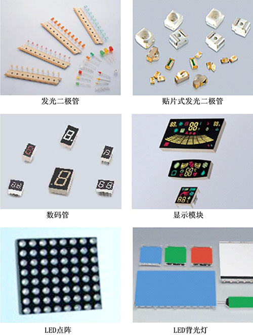 在市面上,LED產(chǎn)品有發(fā)光二極管、數(shù)碼管、米字管、符號(hào)管、點(diǎn)陣顯示屏、LED背光、LED照明燈等,參考如下圖1所示。事實(shí)上,數(shù)碼管、米字管、符號(hào)管、點(diǎn)陣顯示屏……中的每個(gè)發(fā)光單元都是一個(gè)發(fā)光二極管。
