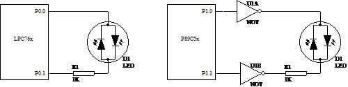 對(duì)于單片機(jī),其I/O灌電流可達(dá)20mA(具體芯片要以數(shù)據(jù)手冊(cè)為準(zhǔn)),可以直接使用I/O控制LED燈作為狀態(tài)指示。