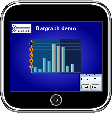 為解決前期開發(fā)沒有硬件的煩惱,Segger提供了一個基于PC的emWin模擬器,用戶可在模擬器上進行GUI界面的設計,待界面設計成熟之后,再將代碼移植到嵌入式開發(fā)平臺,可加快整個工程的開發(fā)進度。如圖 1所示為emWin模擬器運行效果:
