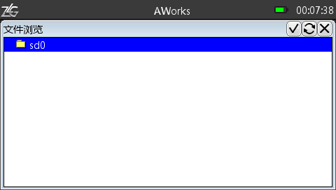 桌面一共實現(xiàn)9個App應用,在主界面點擊對應圖標即可進入App界面。“文件瀏覽” 可對所有被掛載的儲存設備文件進行瀏覽,可逐級進入和退出子目錄。如圖 6所示。