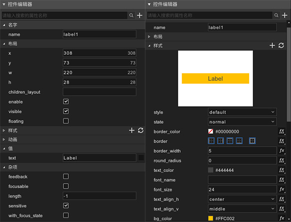 控件編輯器界面可高效便捷的修改屬性和樣式,并支持實(shí)時(shí)預(yù)覽。