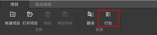 點(diǎn)擊下圖中“打包”按鈕,快速打包工程所需的UI界面文件、圖片、字體、樣式等。