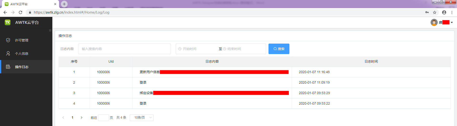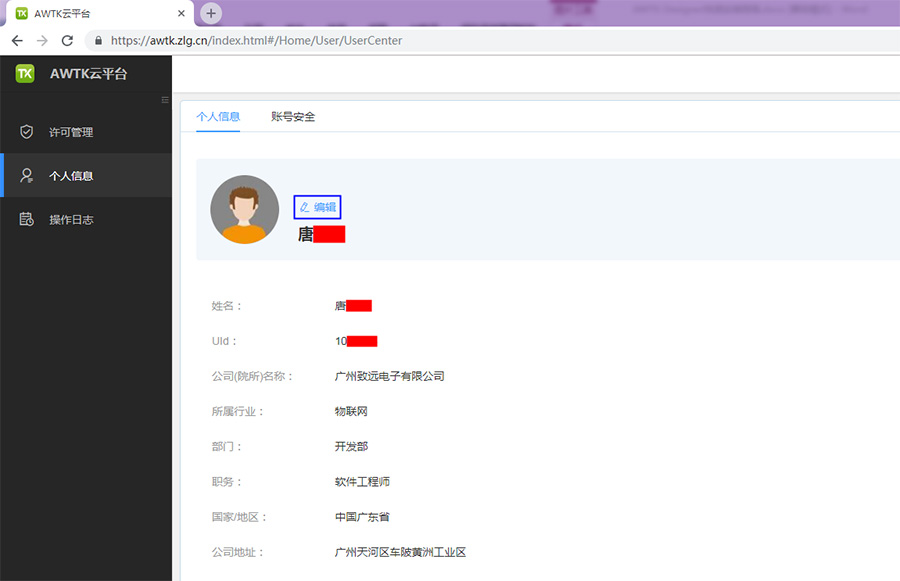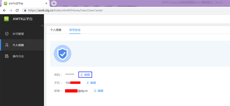 進入AWTK云平臺,可以進行管理許可、修改個人信息、查詢操作日志等操作,有下面兩種方式可以登錄云平臺: