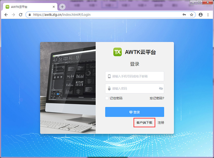 打開網(wǎng)址:https://awtk.zlg.cn ,然后點擊圖1.1中的“客戶端下載”,下載AWTKDesigner。
