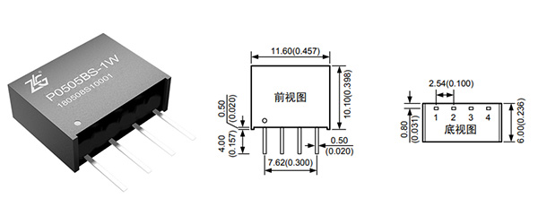 常見的電源隔離模塊內部會集成各種分立器件,如電源芯片、變壓器、電阻電容等,外殼灌封而成,通常采用SIP4封裝,引腳間距為100mil。這種封裝模塊較分立式電路而言集成度更高,且更好的電氣特性。