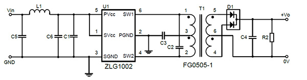 節(jié)點之間的通信一般有Ⅱ總線,CAN或者485,通常情況下不需要進行隔離,但對于特殊場合的應用,還是要對總線進行隔離,為滿足行業(yè)客戶的高性價比要求,致遠電子可為客戶提供P系列電源模塊內(nèi)部的主控ICZLG1002與配套的變壓器FG0505-1,進而搭建總線給RS-485/CAN電路。