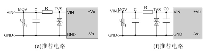 注意:MOV和TVS的選型很關(guān)鍵,選擇適當(dāng)?shù)淖畲笤试S電壓和最大通流量很重要,這個就要參照電源模塊的輸入電壓以及浪涌試驗等級,如果電壓選擇小了后端供電不正常,選擇大了起不到保護(hù)作用,通流量選小了器件容易損壞。