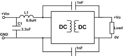 所以,為了解決電源模塊傳導(dǎo)騷擾問題,應(yīng)在模塊傳輸路徑上添加差模濾波和共模濾波電路;如下圖所示: