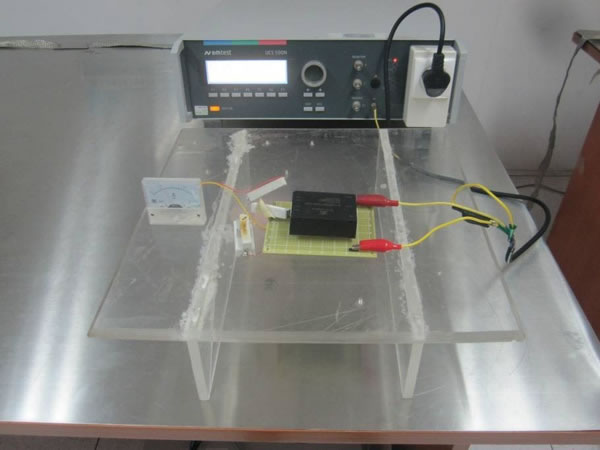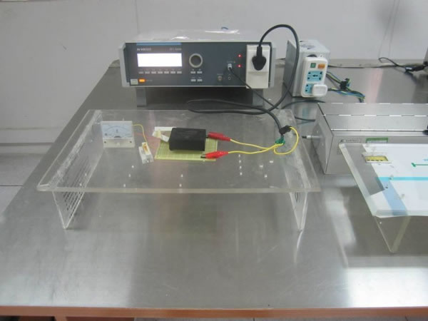 本實(shí)驗(yàn)主要是評估電氣和電子設(shè)備受到射頻電磁場輻射時的性能好壞。根據(jù)GBT17626的規(guī)定,測試主要騷擾源是來自9kHz~80MHz頻率范圍內(nèi)射頻發(fā)射機(jī)產(chǎn)生的電磁場。該電磁場會作用于電氣、電子設(shè)備的電源線、通信線和接口電纜等連接線路上,這些連接引線的長度則可能與干擾頻率的幾個波長相當(dāng),因此,這些引線就變成被動天線,接受外界電磁場的感應(yīng),引線電纜就可以通過傳導(dǎo)方式耦合外界干擾到設(shè)備內(nèi)部(最終以射頻電壓和電流所形成的近場電磁騷擾到設(shè)備內(nèi)部)對設(shè)備產(chǎn)生干擾。
