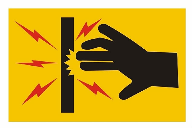 對(duì)于可能觸及危險(xiǎn)電壓的場(chǎng)合,要在設(shè)備的明顯處貼警告標(biāo)簽,如下圖所示。