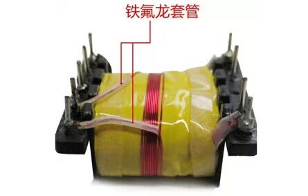為了滿足高頻變壓器的安規(guī)要求,我們除了使用擋墻膠帶外,還會(huì)使用特氟龍?zhí)坠軄?lái)保證繞組與磁芯或繞組的距離。一般特氟龍?zhí)坠荛L(zhǎng)度選擇10mm左右,根據(jù)不同骨架有所區(qū)別。