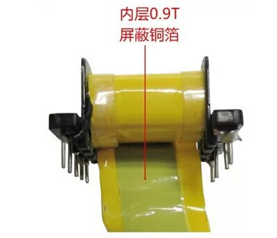 在初級(jí)與次級(jí)之間增加銅箔屏蔽層,主要目的是將原邊的共模干擾信號(hào)通過(guò)屏蔽層返回到大地。一般內(nèi)層屏蔽選用0.9T銅箔,防止短路。