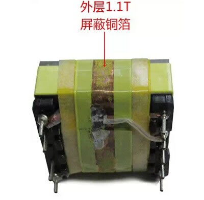 在變壓器最外層的銅箔屏蔽層,主要是起到屏蔽變壓器漏磁場(chǎng)的作用,漏磁場(chǎng)在屏蔽層中感應(yīng)出電流,最終以熱能形式耗散掉。一般外層屏蔽選用1.1T銅箔。