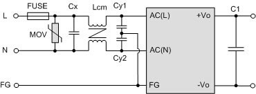 - Y1 電容,Cy1,Cy2:2200pF/400VAC;