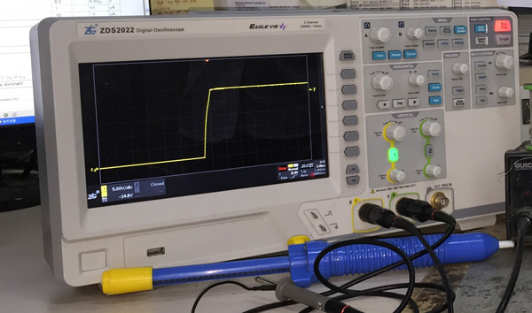 調(diào)試時(shí),檢查驅(qū)動(dòng)波形、測(cè)量占空比、看振鈴信號(hào)、測(cè)量輸出紋波……哪一項(xiàng)都少不了示波器,離開它就成瞎子。對(duì)于公司的ZDS2022,大愛的特點(diǎn)是存儲(chǔ)深度大,觸發(fā)較豐富,在排查波形異?;虼沃C波振蕩這類問(wèn)題時(shí),最喜歡干的就是選大存儲(chǔ)模式,抓一堆波形,再放大看細(xì)節(jié),一般情況下就能找到異常的波形。這個(gè)搞不定時(shí),用模板觸發(fā),精準(zhǔn)找到異常的信號(hào),比較痛快。
