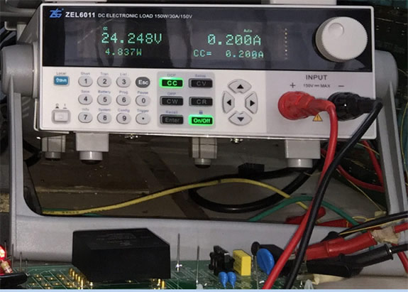 電子負(fù)載沒(méi)什么特別可以說(shuō)的,電源輸出多少功率,負(fù)載就要吸收多少功率。公司的負(fù)載讓人比較滿意的是電壓和電流的測(cè)量精度都比較高,達(dá)到了三位半,很多時(shí)候可以省去拿萬(wàn)用表來(lái)測(cè)量。