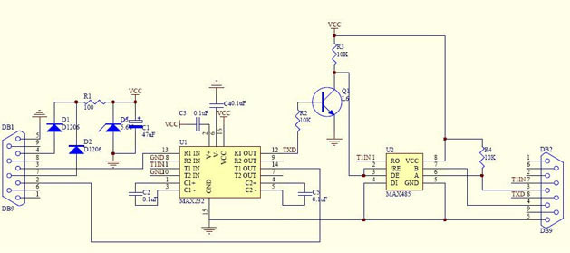 上圖所示的設(shè)計(jì)原理圖,可以做到RS232、RS485及供電電源三隔離,此設(shè)計(jì)均采用模塊搭接,電路設(shè)計(jì)更簡(jiǎn)便,同時(shí)在供電源的選取上也更為方便。