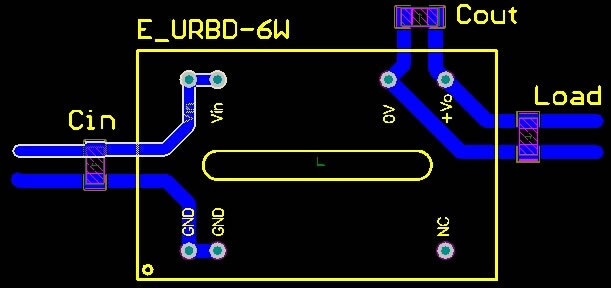 實際應(yīng)用中,在模塊輸入輸出端加電容,配合好的PCB布局可以更進一步的減小模塊的輸出紋波與噪聲。PCB板的布局,根據(jù)電流的流向上放電容,電源模塊紋波噪聲都不再是問題。下圖列舉了兩種布局方式。