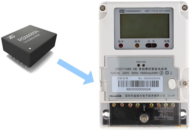 基于最新公布的《Q/GDW354-2012智能電能表功能規(guī)范》要求,致遠電子推出了如圖 2所示的無極性RSM485N隔離收發(fā)器模塊,體積小,應(yīng)用設(shè)計方便。模塊集成電源隔離、電氣隔離、RS-485收發(fā)器及總線保護器件,通訊波特率最高可支持250kbps,最多可連接256個節(jié)點。