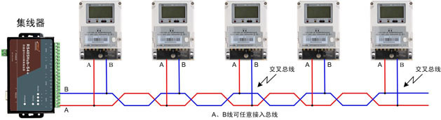 RS485通信接口具有低成本、架構(gòu)簡單、可靠度高及抗干擾能力強等諸多優(yōu)點,所以485通信接口電路在智能電能表通信中占有重要位置,其各項技術(shù)性能,直接影響其通信是否暢通。以總線方式組網(wǎng)遇到的現(xiàn)實問題是,由于普通的485芯片的總線端A、B端是區(qū)分極性的,也就是說A、B端有高電平與低電平之分,就是通常所說的正端(+)與負端(-)。工程施工中,電能表與電能表之間的連接、電能表與采集終瑞之間的連接,必須正端與正端連接,負端與負端連接,才能實現(xiàn)正常的通信。但是,在組網(wǎng)施工過程中,常有將正、負端接反的現(xiàn)象發(fā)生,因而造成通信不暢。