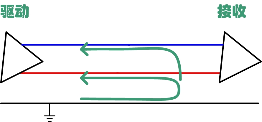 先介紹共模干擾,圖 1、圖 2分別給出了差模和共模干擾及其傳輸路徑。圖中的驅(qū)動器及接收器為差分信號傳輸,類似CAN總線。差模干擾產(chǎn)生于兩條傳輸線之間,共模干擾則在兩條線中同時產(chǎn)生,其電勢是以地為參考。