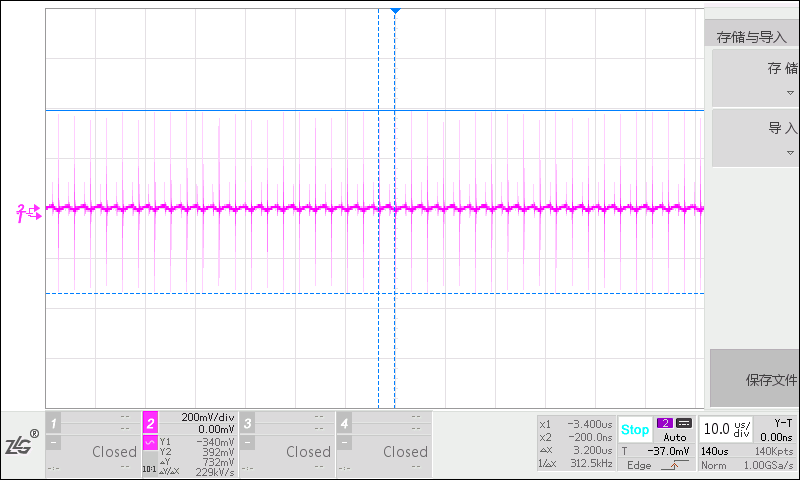 ZDS2024示波器測試對比模塊受到干擾與未被干擾的電源模塊輸出紋波噪聲,對比下圖如圖3所示: