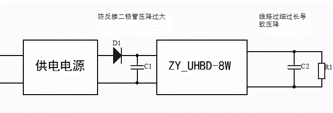 輸入線路過長,使得線路之間產生的壓降過大,而導致輸入電壓低于模塊輸入電壓的下限要求;