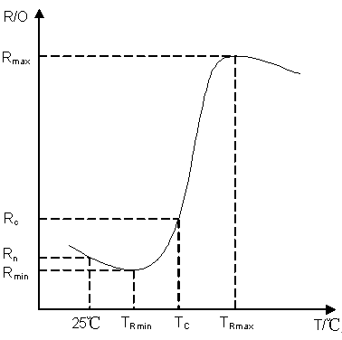 開關(guān)溫度TC:阻值呈現(xiàn)階躍增加的溫度,此時阻值為最小阻值的2倍;