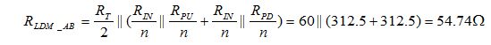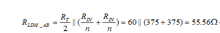 當(dāng)在485總線上增加終端電阻時(shí),可以看出總線A或B的共模負(fù)載并沒有發(fā)生變化,而差分阻抗有了較大的變化,此時(shí)差模負(fù)載為: