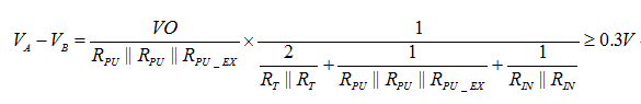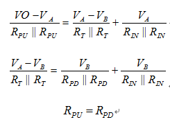 其中:RPU為模塊內(nèi)部上拉電阻,RPD為模塊內(nèi)部的下拉電阻,本例中為24kΩ;