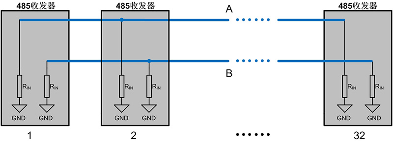 圖4 485總線連接32個(gè)節(jié)點(diǎn)等效示意圖