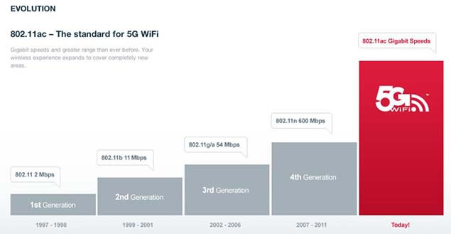5G Wi-Fi(802.11ac)是指第五代Wi-Fi傳輸技術(shù),并且運(yùn)行在5Ghz無線電波頻段(并不是運(yùn)行在5Ghz頻段的Wi-Fi就是5G Wi-Fi,而只有采用802.11ac協(xié)議的Wi-Fi才是真正5G Wi-Fi)。