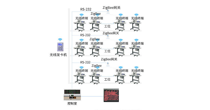 傳統(tǒng)制造業(yè)的生存和發(fā)展離不開生產(chǎn),因此,如何智能化地高效管理生產(chǎn)線,是企業(yè)管理者必須考慮的問題。生產(chǎn)線智能化管理系統(tǒng)可采用RFID卡、無線終端設(shè)備(采用ZigBee模組)、ZigBee串口服務器(ZBCOM-300IE)、LED顯示屏和PC機組成,能使企業(yè)管理層實時掌握生產(chǎn)線的運轉(zhuǎn)狀態(tài)。