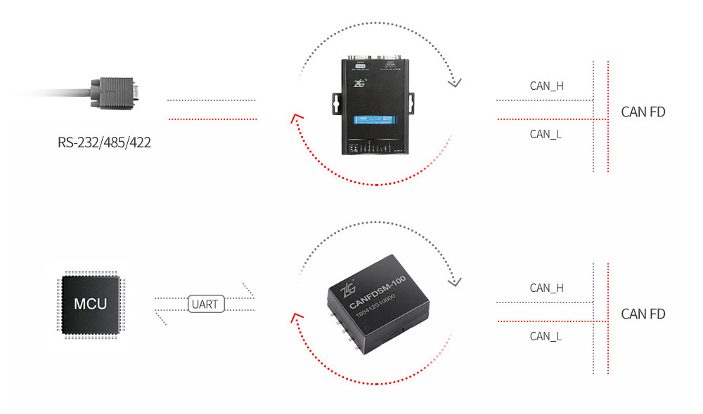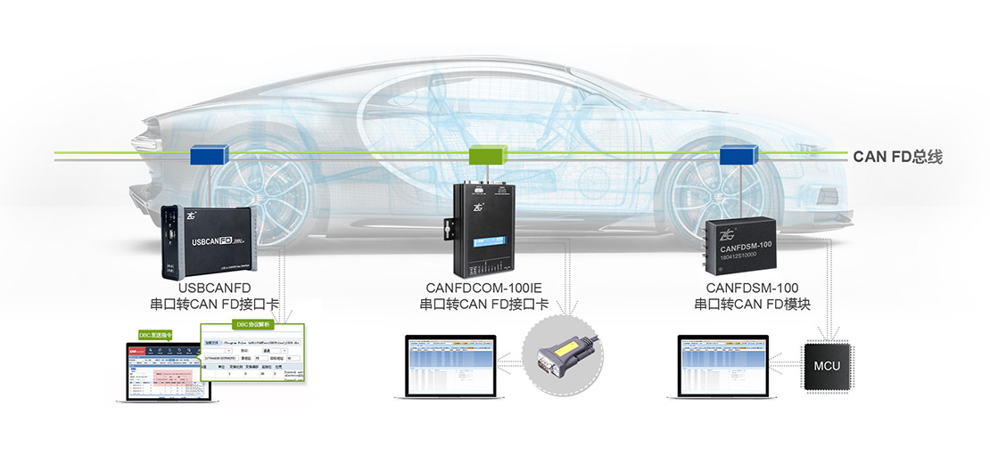 CAN FD總線因其高速率與高數(shù)據(jù)吞吐量,未來將廣泛應用于汽車電子領(lǐng)域。ZLG基于CAN FD應用需求,推出CAN FD升級與測試方案。USBCANFD系列接口卡通過USB2.0端口與PC連接,與CANFD網(wǎng)絡進行數(shù)據(jù)收發(fā),構(gòu)成CAN FD總線控制節(jié)點,結(jié)合上位機軟件ZCANPRO,可有效監(jiān)測診斷CAN FD數(shù)據(jù)。ZLG同時提供可嵌入式CAN FD擴展產(chǎn)品CANFDSM-100,可快速實現(xiàn)汽車CAN網(wǎng)絡升級。