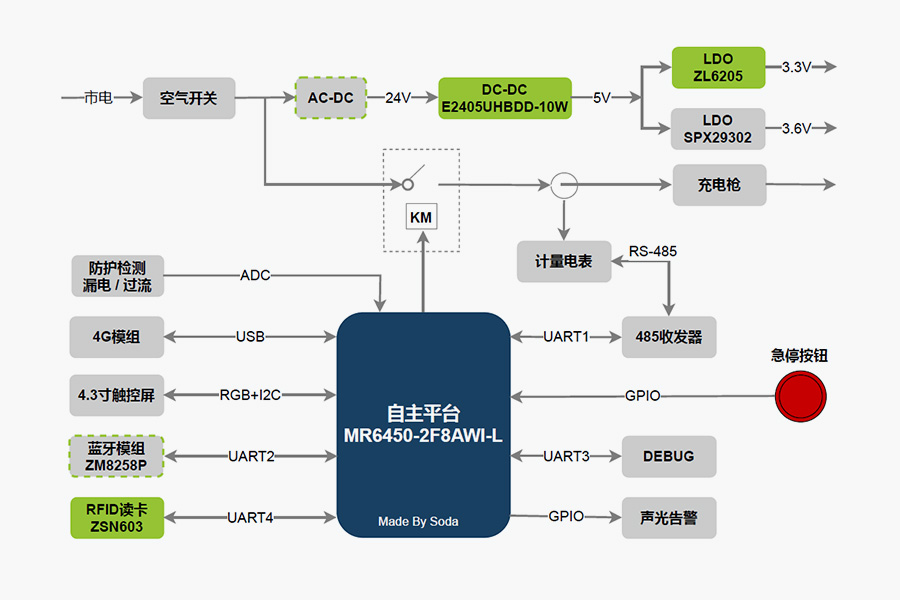交流充電樁是一種為電動(dòng)汽車提供能量補(bǔ)充的設(shè)備。它直接使用標(biāo)準(zhǔn)的220V交流電,功率比較?。?0KW內(nèi),一般3KW/7KW居多),充電較慢,給車輛充電時(shí)需要通過車載的充電機(jī)給電池進(jìn)行充電,樁體的作用主要是實(shí)現(xiàn)人機(jī)交互、刷卡、計(jì)費(fèi)等功能。致遠(yuǎn)電子為交流充電樁應(yīng)用提供核心板、接口隔離、RFID讀卡等產(chǎn)品,同時(shí)提供全方位的技術(shù)支持服務(wù),可以加快您的產(chǎn)品開發(fā),搶占市場(chǎng)。