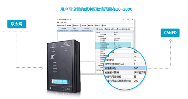 如圖10所示,用戶可以通過配置工具靈活配置CANFDNET系列產(chǎn)品發(fā)送報(bào)文緩沖區(qū),根據(jù)需求自由調(diào)整CAN FD通道的實(shí)時(shí)性與大容量緩沖的平衡。