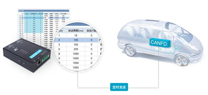 如圖7所示,設(shè)備可進(jìn)行毫秒級(jí)報(bào)文定時(shí)發(fā)送配置,用戶可以自由100條底層精確定時(shí)發(fā)送幀的周期,完全可以滿足汽車電子的測(cè)試需求。