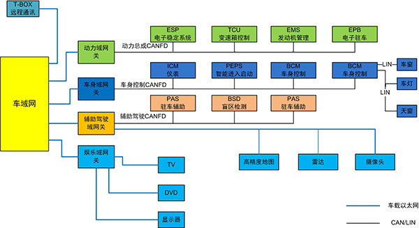 如圖2所示,是新一代智能網(wǎng)聯(lián)汽車整車架構。從圖中可以看出,新一代汽車整車架構中車載以太網(wǎng)與CAN FD共存,而絕大多數(shù)ECU是通過CAN FD來通訊的。這就意味著,新一代智能網(wǎng)聯(lián)車在通過無線技術控制充電的過程中,存在著CAN FD轉Wifi的需求,進而實現(xiàn)CAN FD控制通訊,無線技術控制汽車的快速充電。