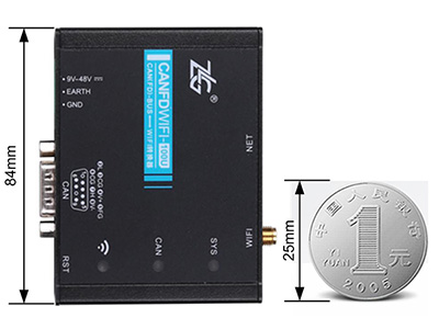 高性能WiFi轉CAN FD設備體積精致小巧,方便用戶輕松實現(xiàn)設備集成,完成CAN網(wǎng)絡的拓展。如圖8所示,設備最長長度大約是一元硬幣的3.3倍