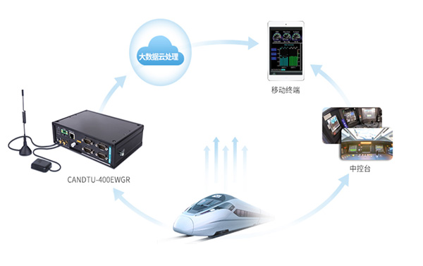 如圖3所示,CANDTU-400EWGR可針對(duì)不同工業(yè)場(chǎng)景的CAN總線數(shù)據(jù)進(jìn)行同步監(jiān)聽和實(shí)時(shí)采集,通過4G通信將數(shù)據(jù)上傳到指定的云端服務(wù)器,實(shí)現(xiàn)數(shù)據(jù)云同步。用戶可通過平板、手機(jī)等移動(dòng)終端登錄云,實(shí)時(shí)查看云平臺(tái)數(shù)據(jù),實(shí)現(xiàn)“設(shè)備+云端+終端”模式下的大數(shù)據(jù)全方位處理。