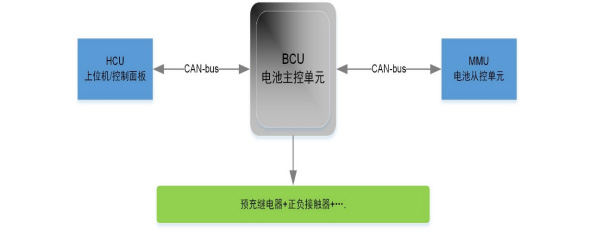CAN-bus通訊在汽車電子中一直是霸主地位,所以,毫無例外地在動力電池組的測試中充當著重要的通訊角色,如圖所示,動力電池系統(tǒng)內(nèi)部雖不復(fù)雜,但也是依靠CAN-bus總線來通信的。